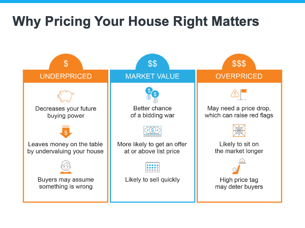 To get a look into the potential downsides of over or underpricing your house and the perks that come with pricing it at market value, see the chart below: