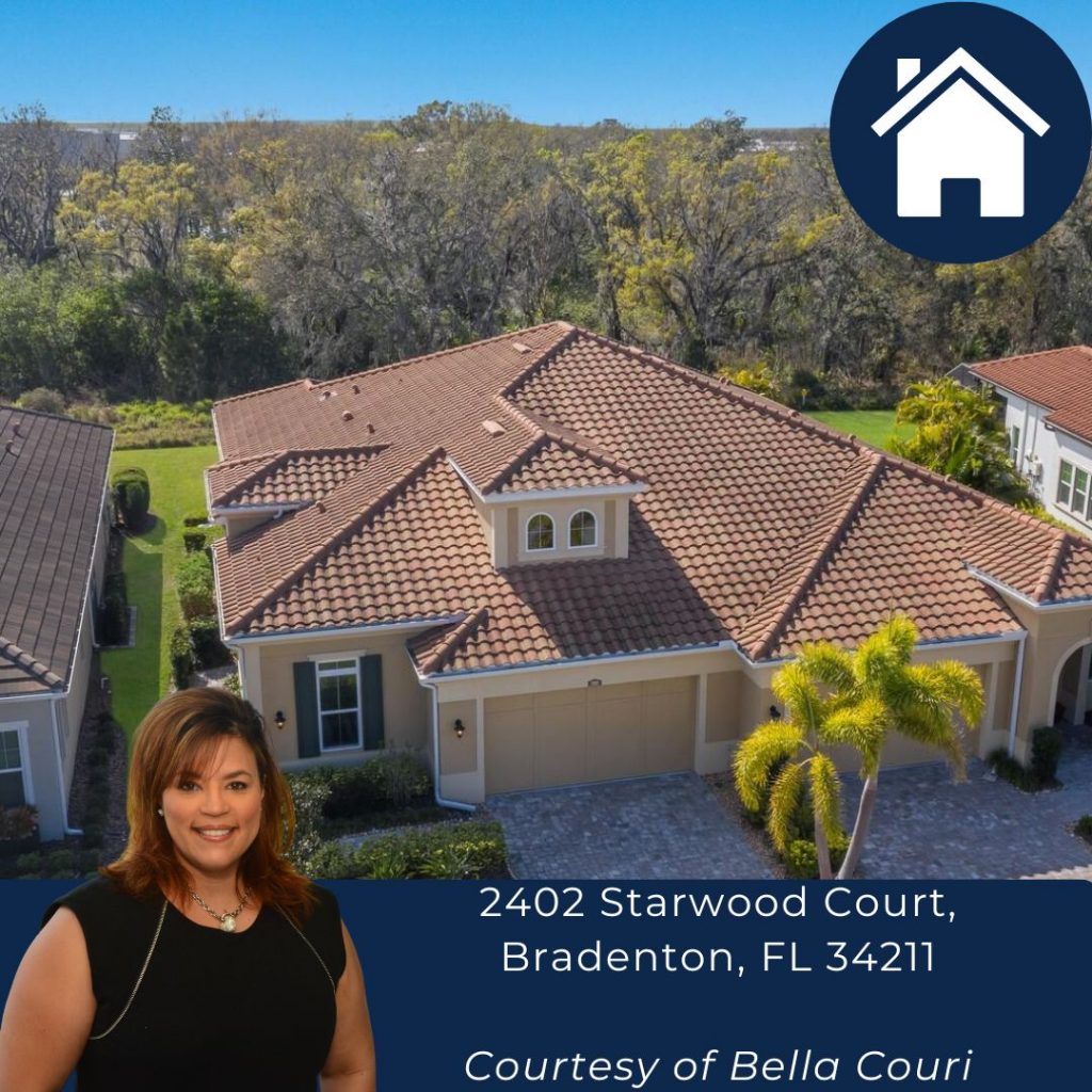 | 2402 Starwood Court, Bradenton, FL 34211 Located in Arbor Grande CALATLANTIC VILLA-HIGHLY DESIRABLE BELLAMY MODEL! 12 Foot ceilings plus trays in Primary bed, primary bath, and main living area. 10 foot ceilings are standard throughout the rest of the Villa. Oversized slider with transom windows bring in natural sunlight and add to the open airy feeling of this villa. Neutral colors throughout with double oven, cooktop and freestanding hood. French doors open to the spacious and private office space. Lots of large windows, high ceilings throughout and 8 foot doors create a very stately feel. From the glass front door you can look straight through to the serene preserve backyard with views to the left of the pond. This parklike feel is perfect for sitting out on your screened lanai anytime of the day or night. Lanai is pre-plumbed for natural gas for outdoor cooking or adding a summer kitchen. Lots of storage spaces in laundry, coat closet, pantry and garage. Nicely appointed bathrooms are bright and modern. Walk-in pantry has solid wood shelves floor to ceiling. Block construction along with tile roof makes this villa solid and quiet. Located in a resort styled community with a beautiful clubhouse, fitness center, 2 heated pools, hot tub, pickleball and private dog park. Arbor Grande is close to restaurants, shopping, LWR Main Street, and just a 45 minute drive to our world famous beaches. Your new home is ready now to meet you! See you soon! I will be here Sunday 1-4pm for an Open House! Courtesy of my colleague Bella Couri. |